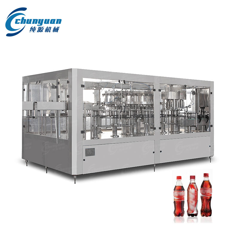 可乐碳酸饮料灌装机械配有CO2压力控制精确,液位控制稳定;设有多处卡瓶、缺瓶、缺盖、过载等保护报警装置,确保出品质量。